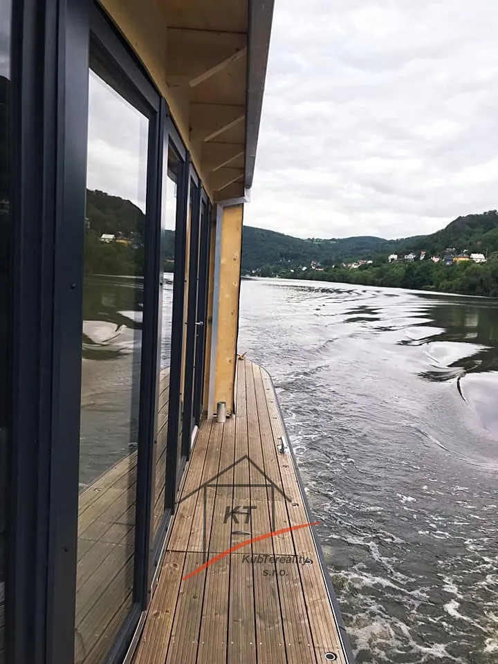 Nabízíme vám kompletně zařízený Houseboat o výměře 140 m2, který poskytuje pocit bydlení na vodě pro rekreační účely. Výroba probíhá v loděnici pod dohledem mezinárodně uznávaných kontrolních institucí (Lloyd's Register of Shipping, Germanische Lloyd a Bureau Veritas). Ocelové části jsou buď z nerezové oceli AISI316, nebo žárově pozinkované oceli. Stavby jsou navrženy v souladu s místními povětrnostními, vodními a zimními vlivy. Nejprve je stavba postavena ve výrobní hale Loděnice Barkmet a pak následně dopravena do místa kotviště. Základní výbava plovoucího domu obsahuje hlavní motor (Allpa, Vetus), dokormidlovací zařízení, kotva a kotevní systémy (dalby), nádrže - pitná voda, palivová a fekální nádrž a balastní nádrže (vyvážení trupu). Plovoucí dům je vybaven nejnovějšími technologiemi pro zajištění energetické účinnosti. Inteligentní vybavení systému pro úsporu energie a technologií umožňuje dosáhnout až LEED hodnocení. Energeticky/efektivní izolace a okna s trojsklem jsou standardní řešení. Dům je vybaven slunečními kolektory, které vyrábí teplou vodu pro domácnost, ve slunném období nabízí velmi nízkou spotřebou energie. O vytápění domu se vám postarají ekonomické sálavé infra panely s nastavitelným termostatem. Všechny tyto systémy a stavební materiály pomáhají šetřit Vaše peníze i životní prostředí v dlouhodobém horizontu. Rozměry - délka - 17m, šířka- 8,2m (ocel, povrchová úprava lodní barvou HEMPL). Technické parametry a vybavení: naftový motor Solé Diesel Allpa 35 HP, Elektro 220W, přední dokormidlovací zařízení, kotevní elektrický naviják, WC s lodním panelem (lodní fekální nádrž), sprcha, boiler, cisterna na vodu 1000litrů (užitková voda a odpadní), balastní nádrže (vyvážení trupu)Vybavení - lednice, sporák indukční, mikrovlnka, alarmový systém střežení, moderní led osvětlení, elektrické vyhřívané podlahy+ vybasto (diesel. horko-vzdušní topení). Houseboat není závislý na elektro - břehové přípojce kvůli solárním panelům - velmi ekonomická spotřeba- funkčnost pří úplném vypnutí elektřiny (alarm zařízení, lednice, boiler, osvětlení ). Energeticky/efektivní izolace a okna s trojsklem jsou standardní řešení. Dům vybaven slunečními kolektory, které vyrábí teplotu vody pro domácnost, ve slunném období nabízí velmi nízkou spotřebu energie. O vytápění domu se vám postarají ekonomické sálavé infra panely s nastavitelným termostatem. Všechny tyto systémy a stavební materiály pomáhají šetřit Vaše peníze i životní prostředí v dlouhodobém horizontu. 4 místa na spaní, palubní terasa a patrová terasa s další možnosti využiti - vířivka, terasa na opalování, grilování. Při osobní prohlídce a i projížďce na vodě nejlépe posoudíte, zda je tento houseboat vhodný právě pro Vás. Nabízíme vám možnost financování naším smluvním partnerem. Pro více informací nebo sjednání prohlídky kontaktujte certifikovaného realitního makléře.