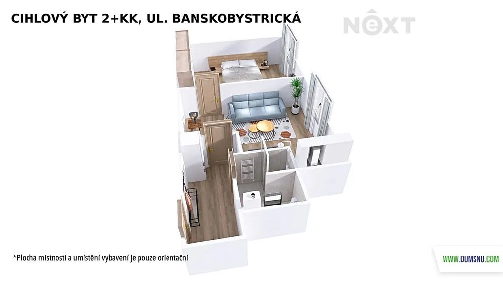 Byt v osobním vlastnictví o velikosti 2+kk s výměrou 44 m2 se nachází se v 3.NP cihlového domu, který je zrekonstruovaný, stejně jako samotný byt.