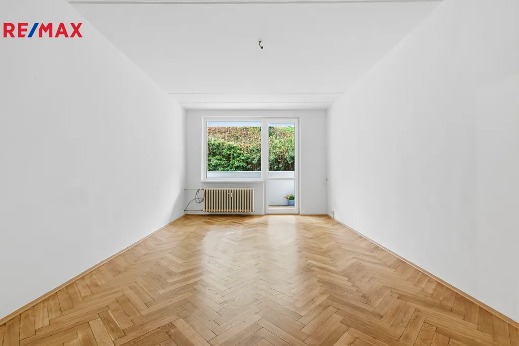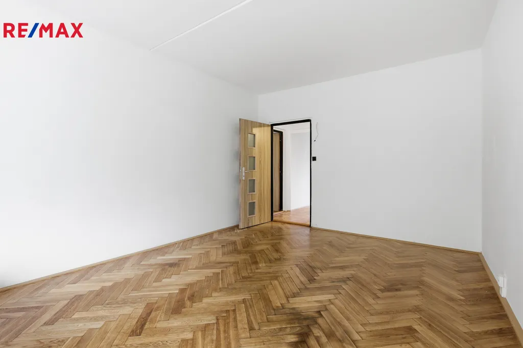 Byt tvoří tři samostatné pokoje, z nichž dva disponují vlastní velkou lodžií orientovanou do klidného a udržovaného parku za domem. Podlahy v obytných místnostech tvoří kvalitní parkety, které byly zbroušeny a jsou ve výborném stavu. Kuchyně potěší svou velikostí a možnosti dalšího rozšíření odstraněním vestavěné skříně. Koupelna a WC jsou oddělené. Okna kuchyně a obývacího pokoje směřují na severozápad, zatímco pokoje s lodžiemi jsou orientovány na jihovýchod.