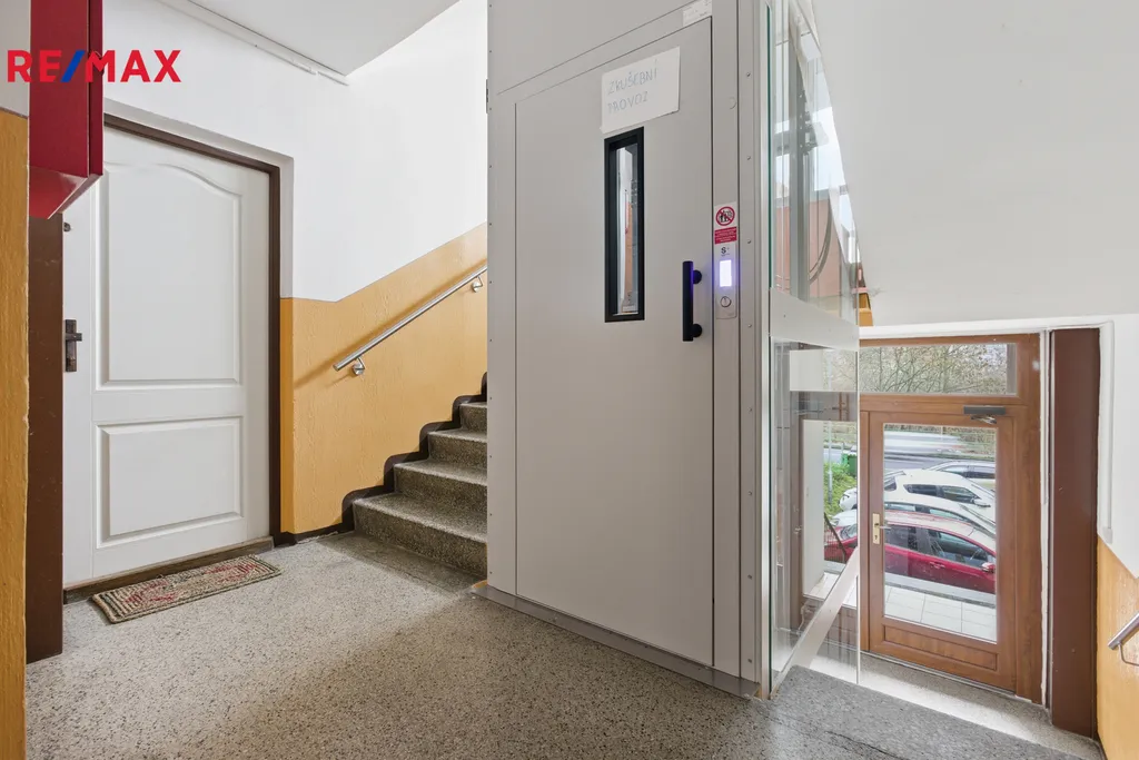 Byt se nachází v přízemí panelového domu z roku 1980, který prošel rozsáhlou revitalizací – zateplením, modernizací klíčových prvků a instalací výtahu. Dům je situován lehce uvnitř vnitrobloku, což zajišťuje klid a minimální ruch z ulice. Před domem je k dispozici menší parkoviště pro obyvatele, další místa lze pohodlně najít v přilehlé ulici. Obyvatelé domu dbají na pořádek ve společných prostorách a dlouhodobě udržují dům v dobrém stavu.