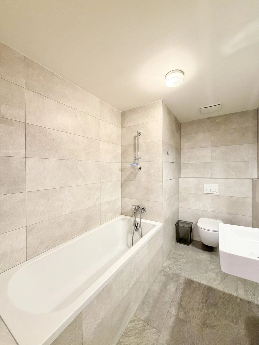 Byt se nabízí částečně vybavený. Kuchyň je vybavena lednicí, mrazákem, myčkou, elektrickou troubou, varnou deskou a digestoří. Obývací část i druhý pokoj jsou nezařízené. V koupelně je vana, umyvadlo, topný žebřík a toaleta. Druhá toaleta je umístěna samostatně.