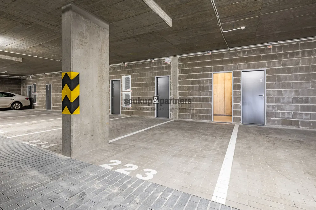 Součástí nájmu je garážové stání č. G223 v 1. podzemním podlaží a sklepní kóje KG208 umístěná hned u parkovacího místa, což výrazně zvyšuje komfort .