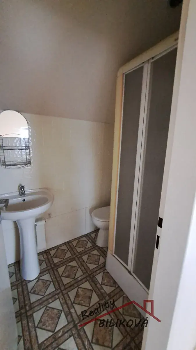 Dispozice domu: veranda, předsíň, kuchyň, spíž, 3 pokoje, koupelna a samostatné WC. V podkroví 2 pokoje, koupelna s WC a sprchovým koutem. V kuchyni nový elektrický sporák s varnou deskou, digestoř, lednice. Z kuchyně vchod do spíže. V koupelně vana a sprchový kout. Samostatné WC. V domě několik vestavěných skříní.