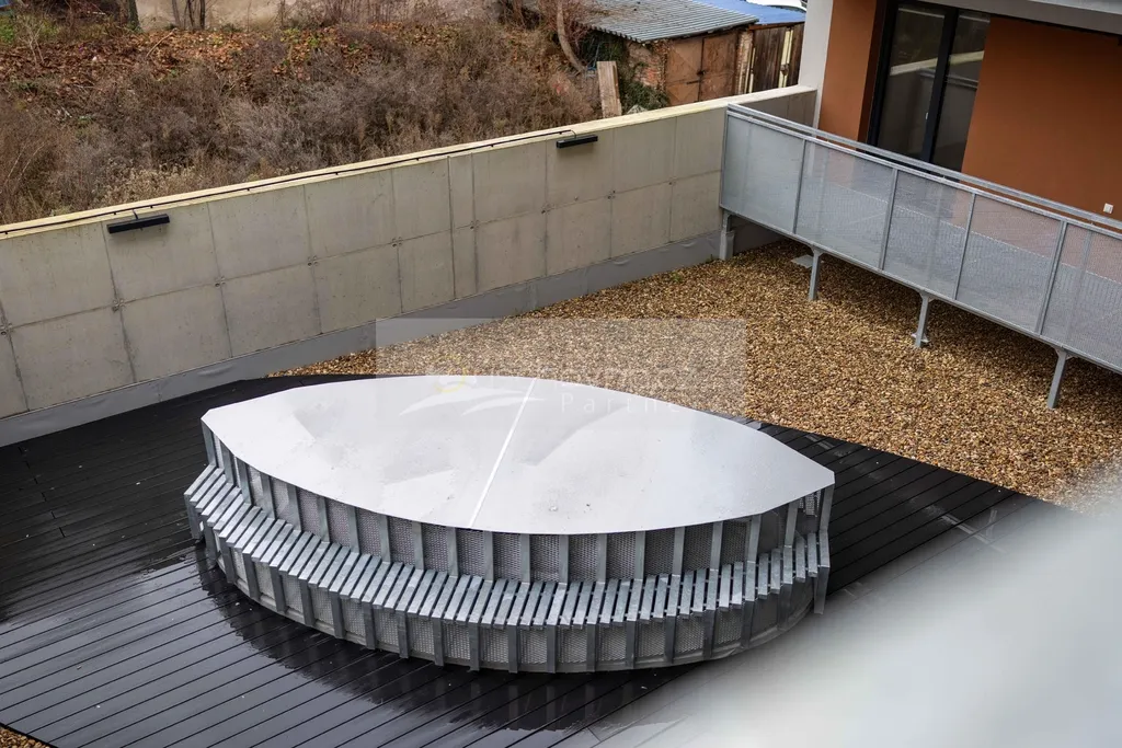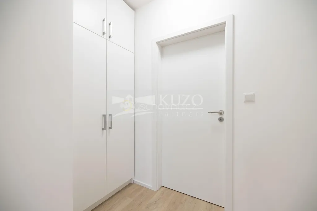 V bytě je podlahové vytápění, elegantní vinylové podlahy, rekuperace v pobytových místnostech, velkoformátová okna s trojskly a koupelna v čistém, moderním designu. Nízké provozní náklady jsou díky PENB třídy C.