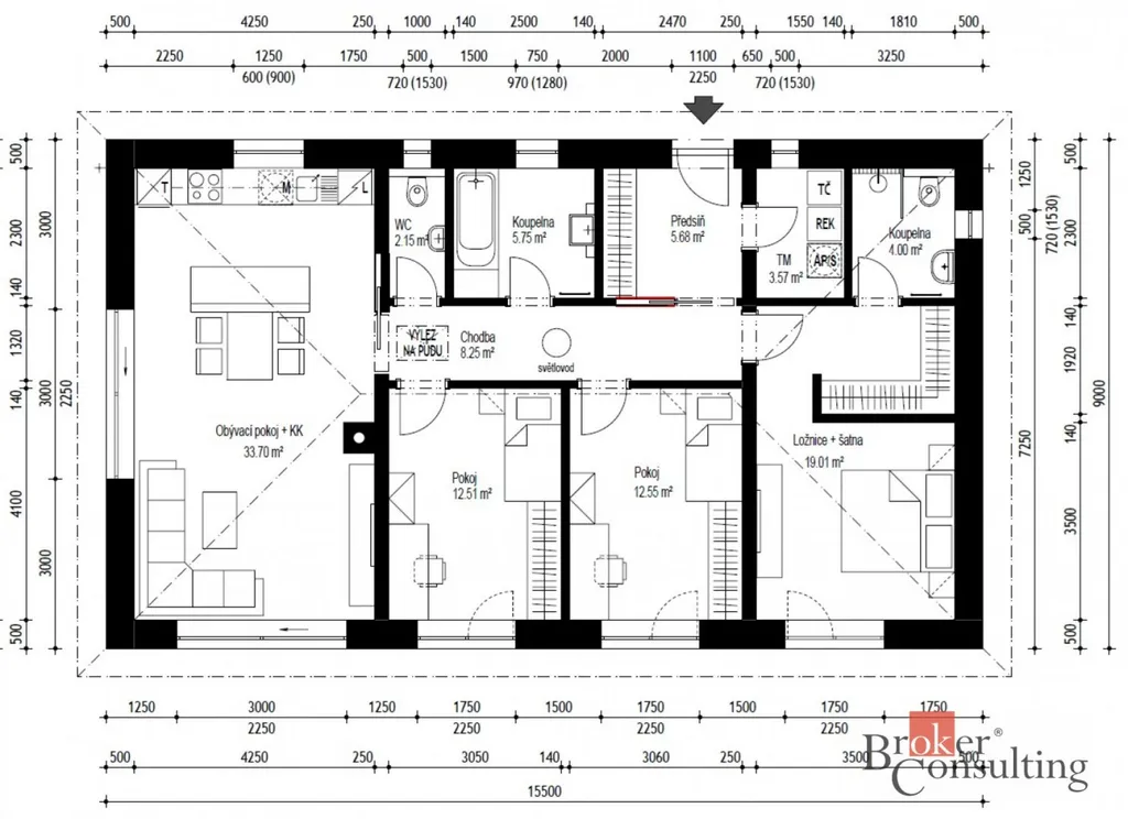 Dům o dispozici 4+kk s podlahovou plochou 107 m² je navržen tak, aby poskytoval maximální komfort pro rodinu. Dominantou je prostorný obývací pokoj s přímým vstupem na terasu o ploše 45 m² a dále na zahradu orientovanou do soukromí za domem. Velkou výhodou jsou také dvě koupelny, které výrazně zvyšují praktičnost domu.