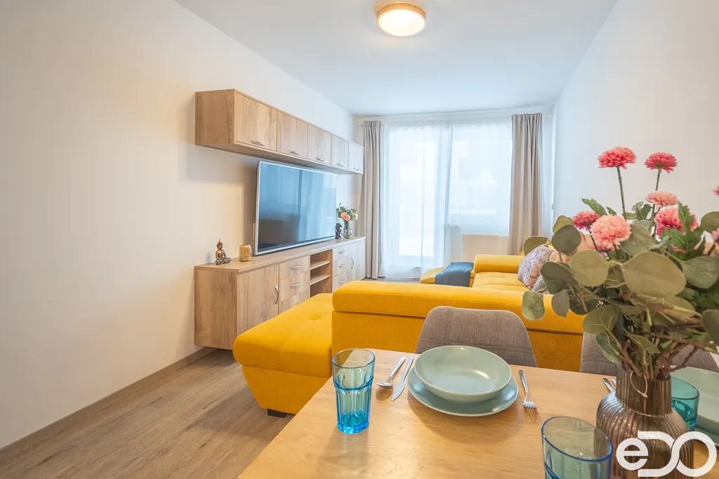 Dispozice je velmi dobře provedená, praktická a vzdušná. Obytná část je přirozeně napojená na terasu, která se stává dalším plnohodnotným prostorem pro každodenní život. V bytě jsou osazeny žaluzie, kvalitní povrchové materiály a moderní vybavení.