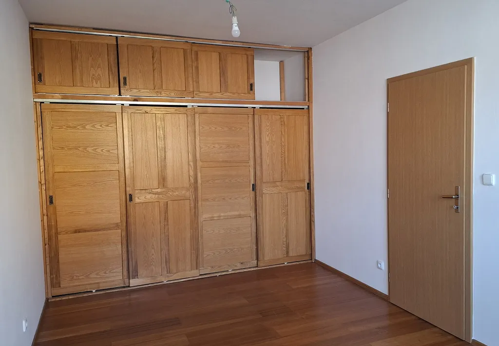 V pokoji je vestavěná dřevěná (jasan) šatní skříň s úložnými prostory. Podlaha dřevěná (Teak), plastové okno a dřevěná garnýž.