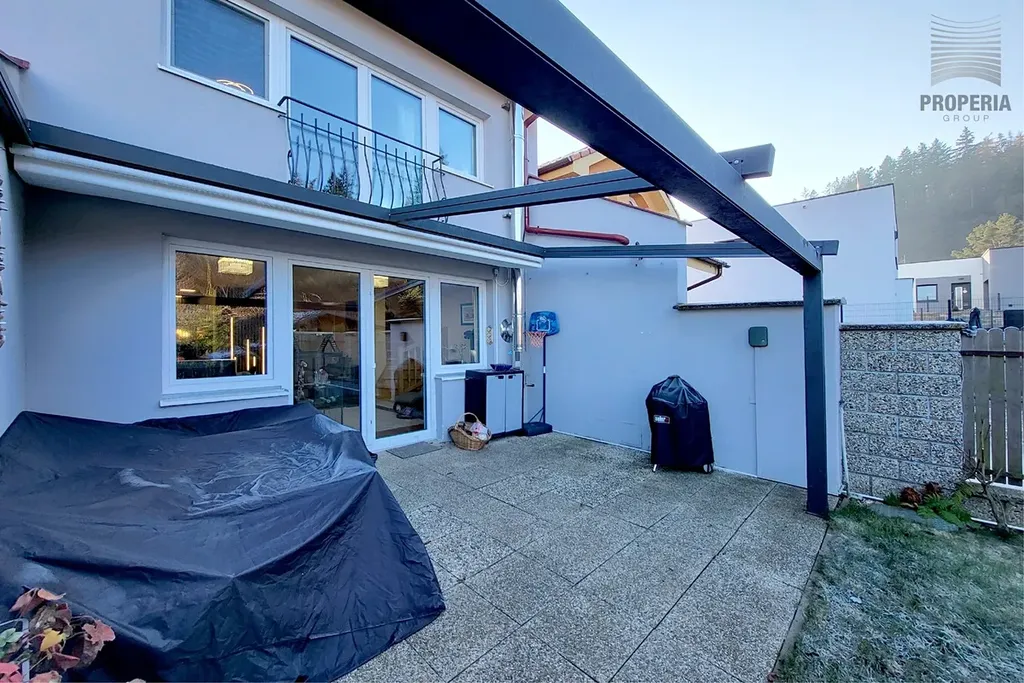 Na terase pod hliníkovou pergolou najdete venkovní posezení, místo pro pohodu, klid, relaxaci, nebo grilování.
