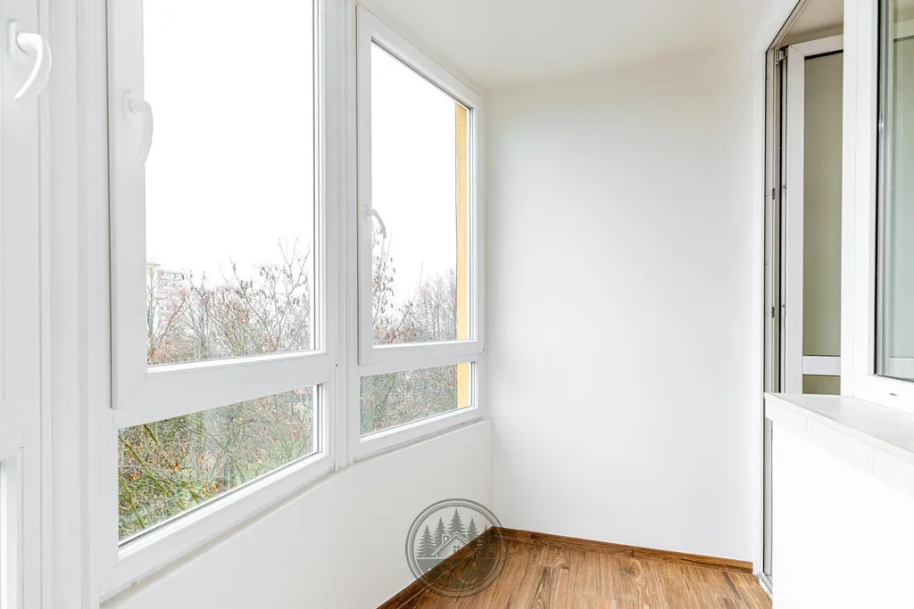 Kvalita rekonstrukce je vidět na první pohled - celý byt má nově vyrovnanou podlahu pomocí nivelace a položenou kvalitní vinylovou krytinu, vyměněny byly všechny dveře včetně zárubní a prostor působí moderně a velmi čistě už při vstupu. Obývací pokoj se zasklenou lodžií nabízí moderní obývací stěnu s přípravou na TV, doplněnou podsvícením s možností regulace intenzity pomocí ovladače. Osvětlení obývacího pokoje bodovými svítidly umožňuje přepínat mezi teplým a studeným tónem světla, což platí také pro druhý pokoj. V pokojích jsou instalovány moderní dotykové vypínače, které umocňují nadčasový styl rekonstrukce.