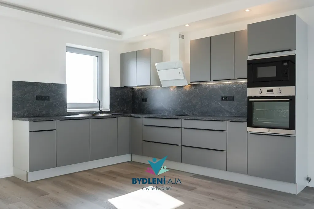 Tepelné čerpadlo, podlahové topení, moderní kuchyňská linka s prémiovými spotřebiči ELEKTROLUX.