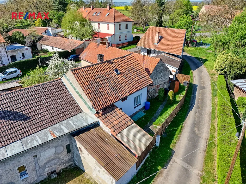 K chaloupce patří malá předzahrádka. V domě není koupelna a není zde zavedená voda. Nabízí se možnost vybudování vlastní studny nebo využívat pitnou vodu z obecní studny, která je vzdálená cca 20 metrů od domu. Toaleta je řešená chemickým WC. Možnost napojení na kanalizaci.