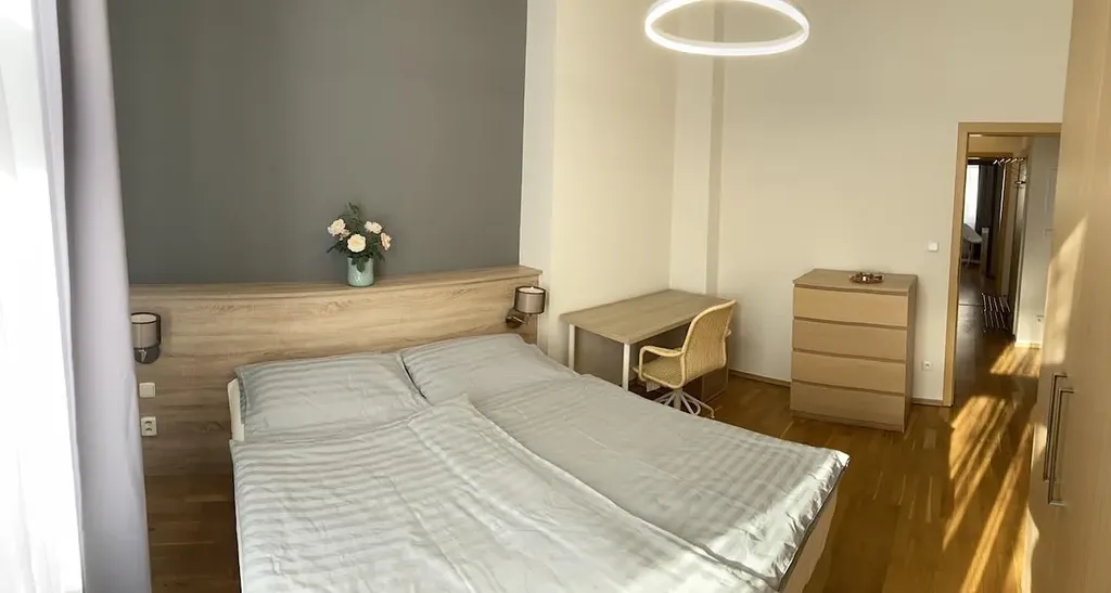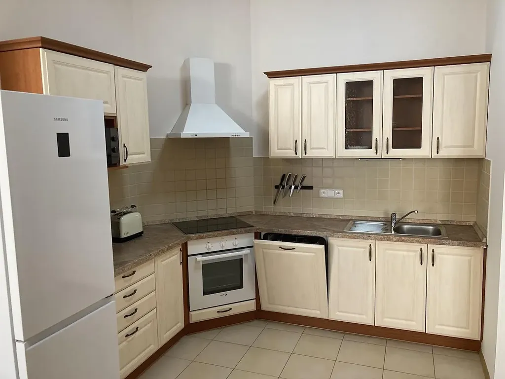 Newly renovated and fully furnished 2 bedroom apartment, 3+kk, 60 sqm, is situated on the 2nd floor in well maintained building with elevator. Attractive area in Vinohrady close to Náměstí Míru. Apartment consists of entrance hall, living room with kitchenette equipped with all appliances including set of dishes, 2 bedrooms (1 double, 1 single), bathroom with shower, separated toilet, washing machine with dryer. The rent CZK 32.000,-/month + services 3.600,-/month + deposits for energies. Internet connection and SAT TV included. Possibility to rent garage parking close by. Apartment is suitable for max. 3 persons. Available from 2/2026.