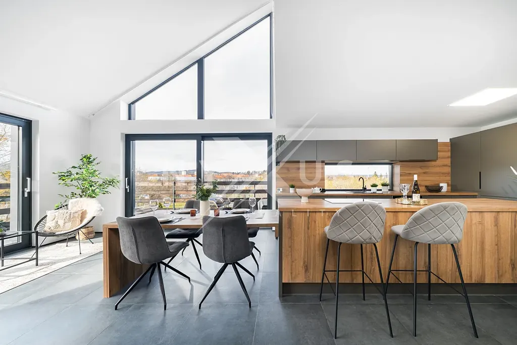Větší jednotka za 15 490 000 Kč má dispozici 4+kk a užitnou plochu 185 m². Informace o ní najdete v samostatném inzerátu na webu naší kanceláře.