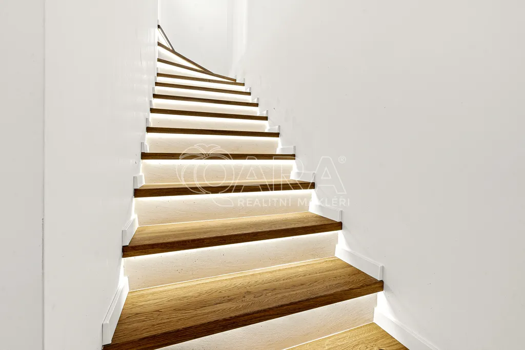 ✅ Dubové schodiště s podsvícením – detail, který potěší
