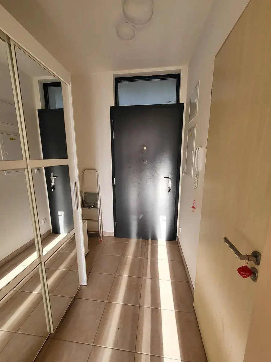 Pokoj bez kuchynské linky, rozkládací pohovka, komoda, skřín, pračka. Krásná koupelna vybavená sprchovým koutem, WC. V předsíni věšák, botník,skřín. V pokoji jsou laminátové podlahy, v koupelně, předsíně -dlažba.
