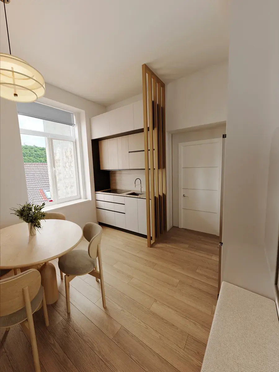 Byt je v osobním vlastnictví, což nabízí výhodu větší nezávislosti a možnosti upravit prostor dle vlastních představ včetně výběru kuchyňské linky. Tato nemovitost kombinuje pohodlí rekonstruovaného interiéru s šarmem cihlových bytových domů charakteristických pro Prahu.