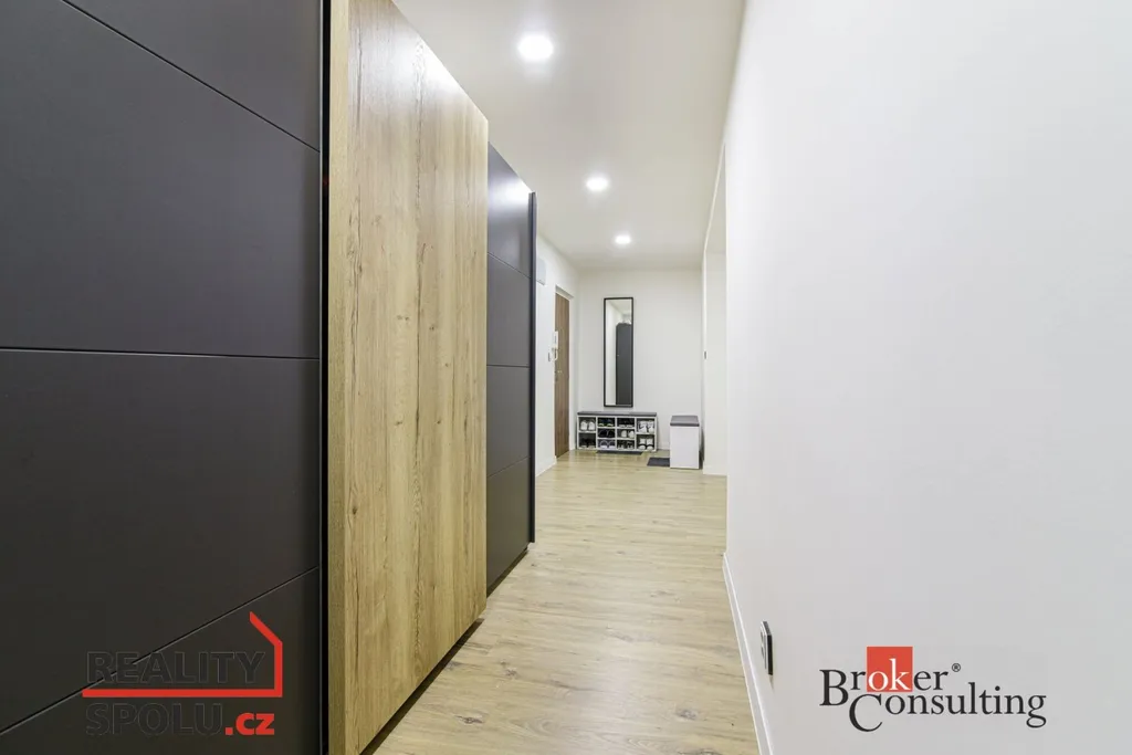 Součástí bytu je prostorná vstupní chodba, která nabízí dostatek místa pro úložné prostory, dále obývací pokoj s moderní kuchyňskou linkou, samostatná ložnice a koupelna s odděleným WC. Byt se pronajímá bez vybavení tudíž si jej nájemník může zařídit dle svého, zůstává pouze kuchyňská linka s vestavěnými spotřebiči.