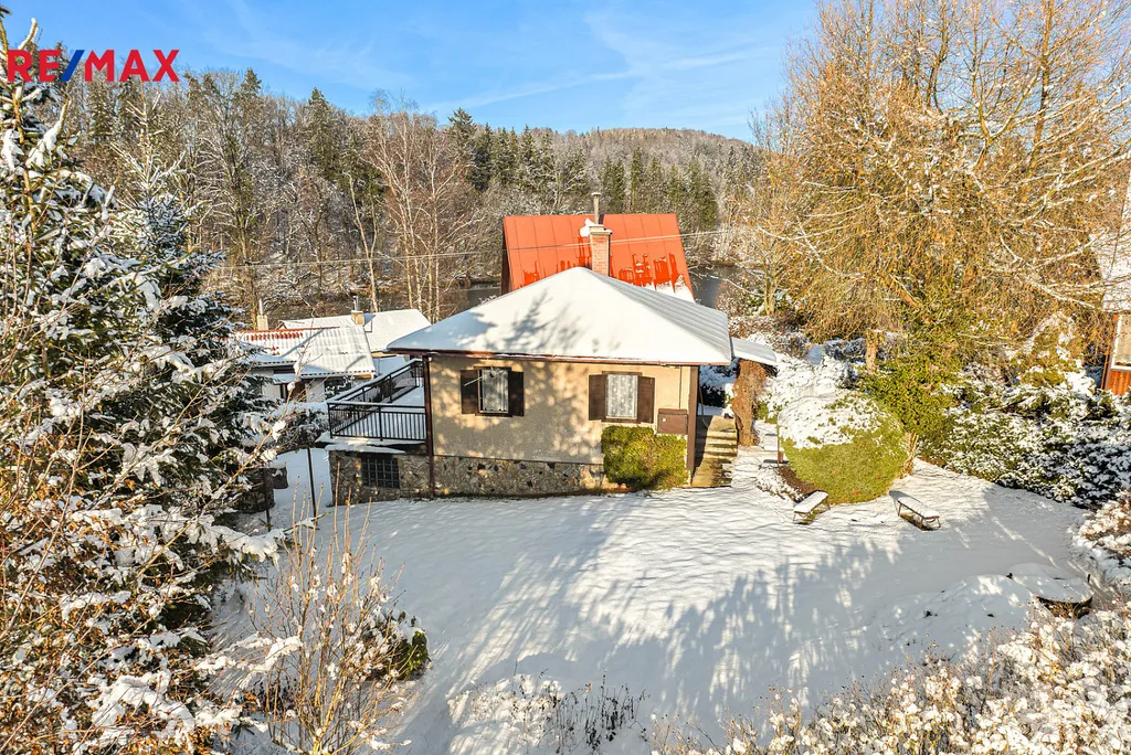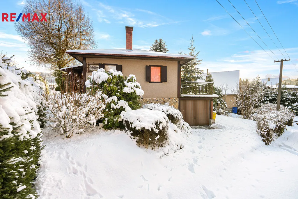 K chatě patří prostorná terasa o velikosti 15,1 m² a garáž o ploše 15,3 m². Pozemek o výměře 353 m² nabízí vzrostlou zeleň, příjemné posezení i ohniště – ideální prostor pro rodinné grilování nebo večerní relax.