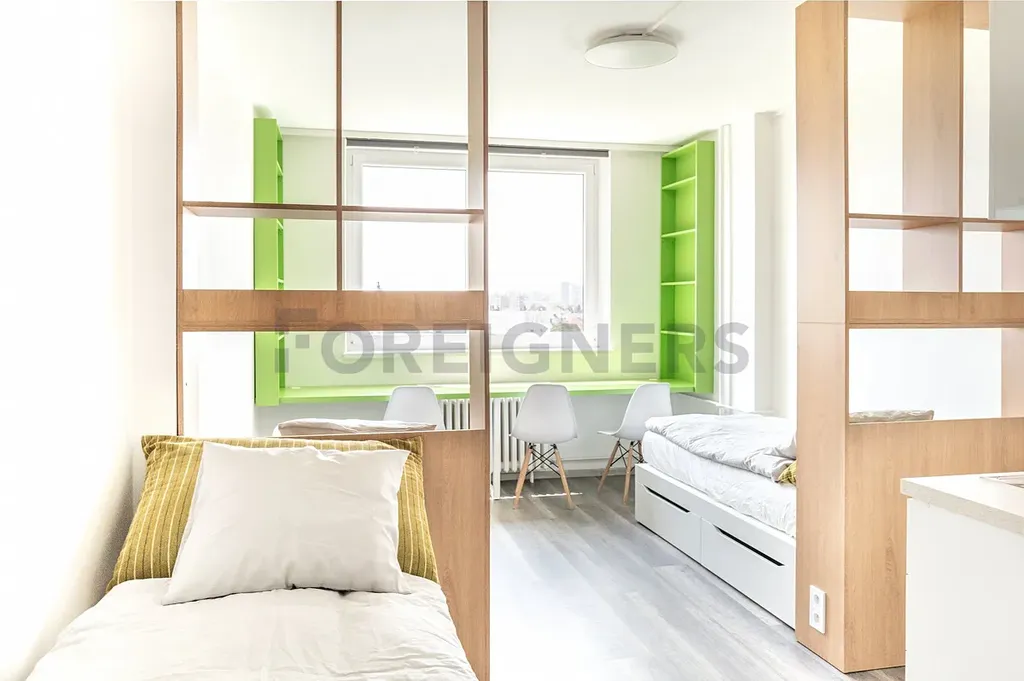 K dispozici moderní ubytování na Střížkově – cca 15 minut do centra, metro C, supermarket 2 minuty chůze. Perfektní pro studenty i mladé profesionály.
