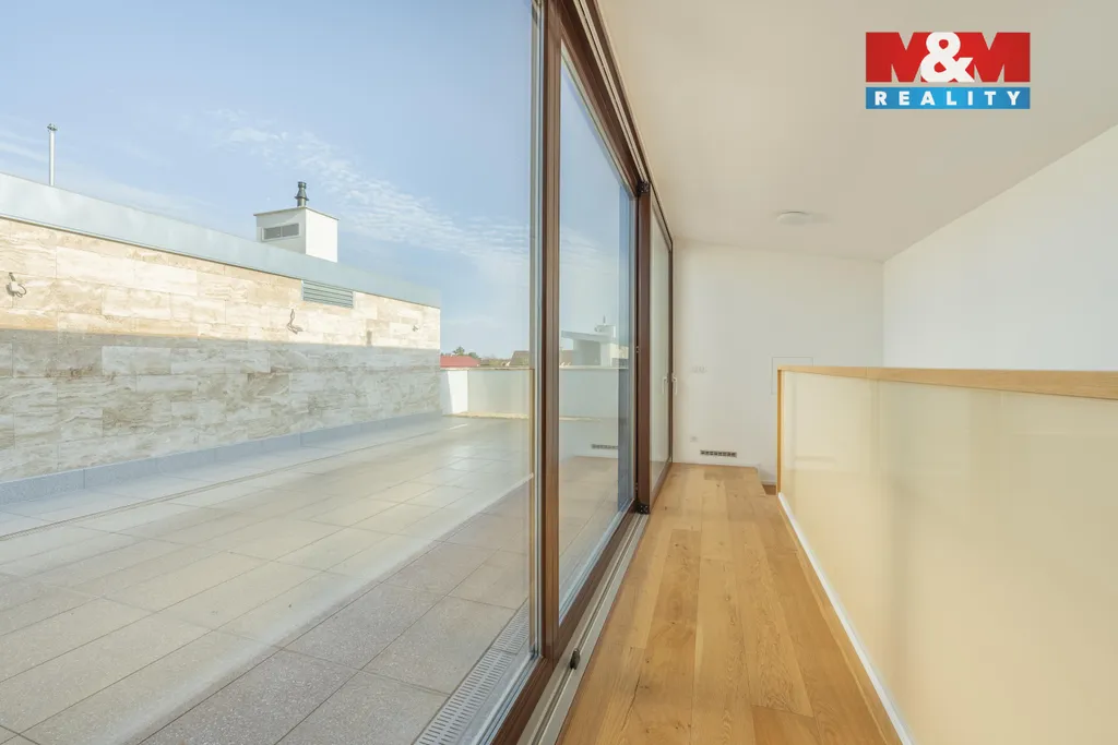 Nabízíme naprosto výjimečný řadový rodinný dům ve velmi vyhledávané části Prahy – Libuši. Tato novostavba nabízí čtyři nadzemní podlaží s celou užitnou plochou 279m². Moderní a prostorný interiér zahrnuje sedm místností a čtyři koupelny s toaletou. Dům je postaven z prémiových materiálů a je vybaven vestavěnými skříněmi, centrálním vytápěním, bezpečnostním systémem, přípravou pro venkovní elektrické žaluzie. K dispozici jsou dvě terasy – prostorná střešní terasa o ploše 84 m² a další terasa v prvním patře o velikosti 38 m² odstíněná od sousedních teras. Zahrada za domem má rozlohu 96 m², předzahrádka před domem má pak 32 m². Fasáda celého domu je obložena kamenným obkladem z travertinu. Dvě podzemní garážová stání zajišťují komfortní parkování a vstup z garáže přímo do domu. Nemovitost se nachází v klidné části uzavřeného areálu hned vedle budoucí stanice metra C a je připravena k okamžitému nastěhování. Nepropásněte tuto jedinečnou příležitost. Energetický štítek B.