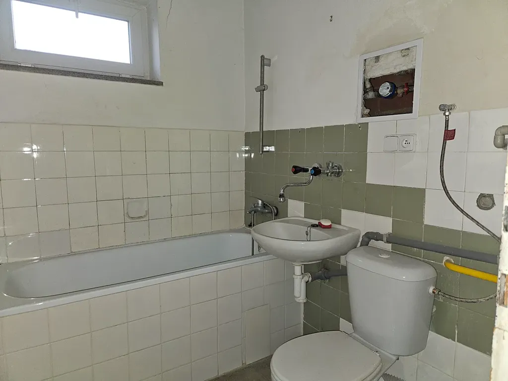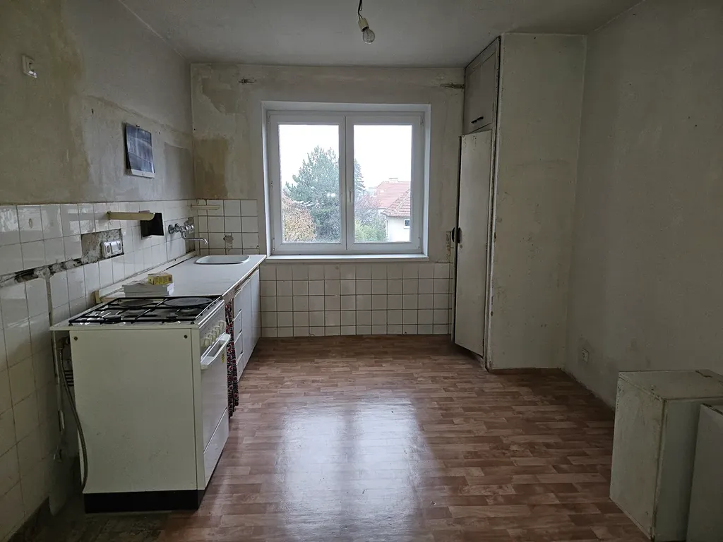 V bytě je umístěn kombinovaný kotel na vytápění a ohřev TUV, instalace není dokončena – chybí rozvody po bytě. Byt má zjevné vady a je určený k rekonstrukci. Je třeba obnovit omítky a malby, podlahy, rozvody topení.