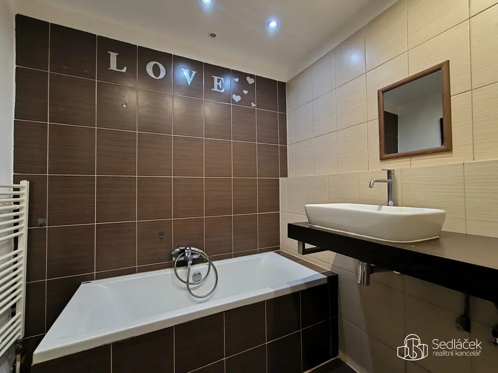 Koupelna je osazena vanou a závěsným WC.