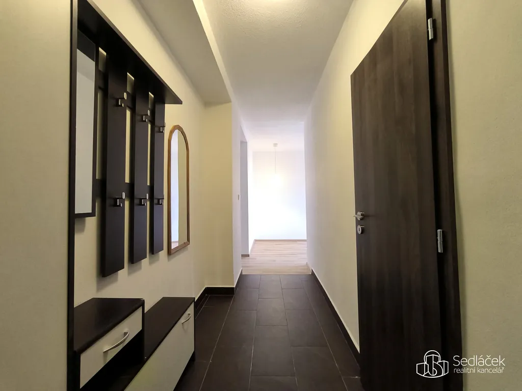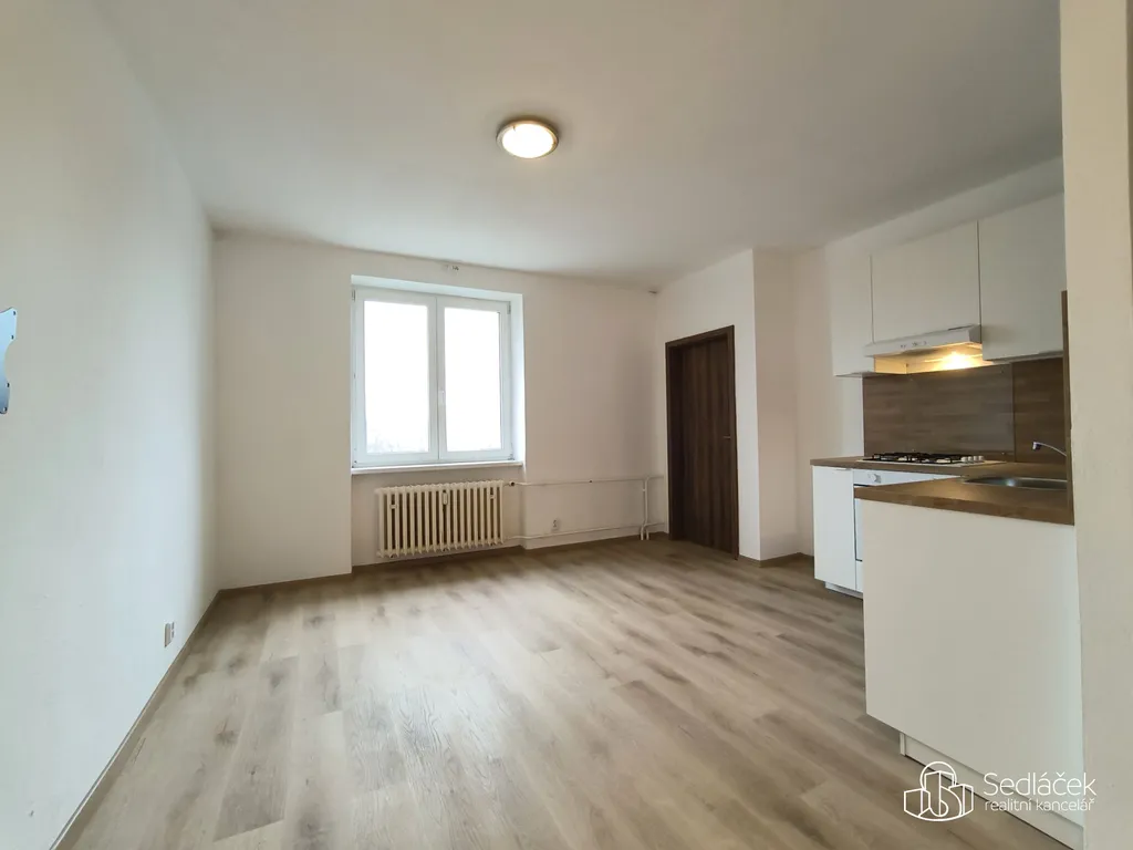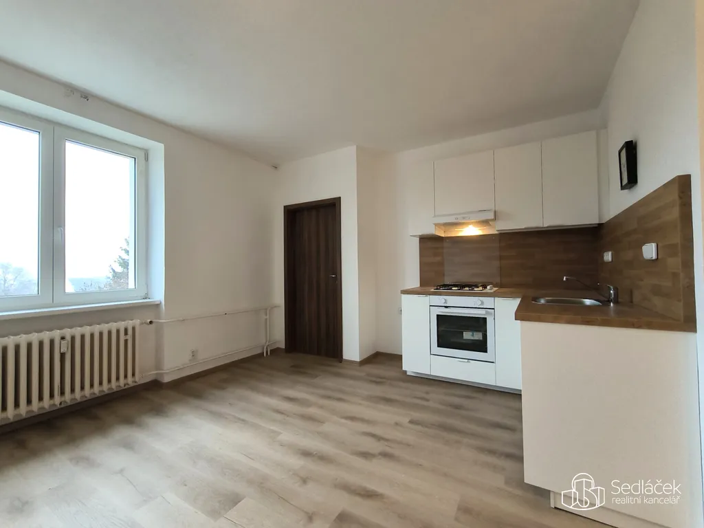 Původní dispozice 2+1 je nyní řešena jako prostorná kuchyň s jídelním koutem a obývacím prostorem, jedna neprůchozí ložnice a další pokoj vhodný jako dětský pokoj nebo pracovna. Do tohoto pokoje se vejde dětská válenda nebo postel o šíři 140 cm.