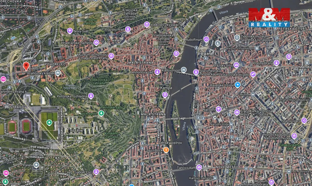 Nabízíme k prodeji výjimečný a atypický podkrovní byt 2+kk o 114 m² s terasou 5,8 m², umístěný v 5. NP domu s výtahem v prestižní pražské lokalitě Za Pohořelcem. Už při vstupu zaujme prostorný obývací pokoj s kuchyní, který vytváří příjemné a reprezentativní prostředí pro každodenní život i setkávání. Dispozice dále zahrnuje koupelnu s vanou a WC, samostatný pokoj se vstupem na terasu, šatnu a další WC. Z obývací části vede designové schodiště do podkrovní ložnice, kde se nachází druhá koupelna se sprchou, WC a dvě šatny, což podtrhuje praktičnost a soukromí tohoto bytu. K bytu náleží podíl na rozlehlé zahradě o 530 m², která poskytuje klidné místo – výhoda, která je v Praze spíše vzácností. Nemovitost je vhodná pro ty, kteří hledají prostor, soukromí a osobitou atmosféru podkrovního bydlení v prestižní lokalitě. Skvělá dopravní dostupnost – tramvajové zastávky Pohořelec a Malovanka jsou pár minut chůze, rychlé spojení na metro A . Do centra se snadno dostanete i autem.