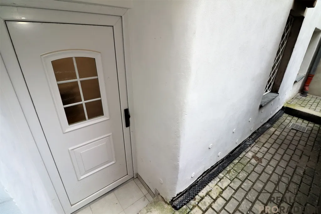 Byt v domě je situovaný v suterénu -1.NP/5 cihlového domu s vlastním vstup z vnitrobloku domu.