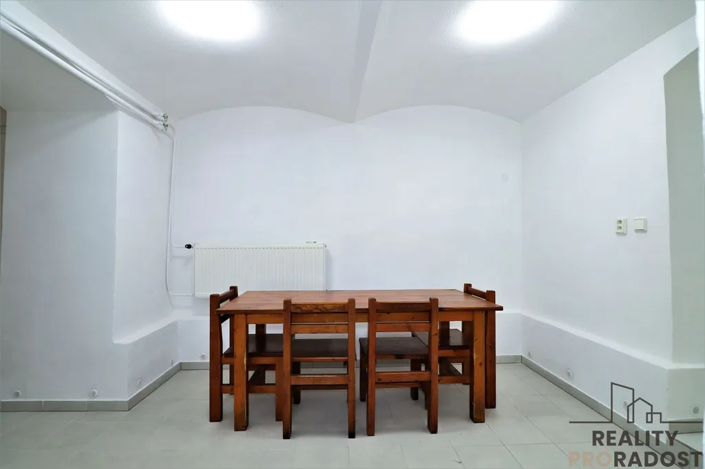 - jídelna s větším stolem a židlemi ( 10,3m² ) + menší oddělená místnost ( 3,2m² )