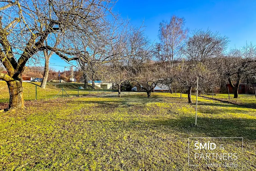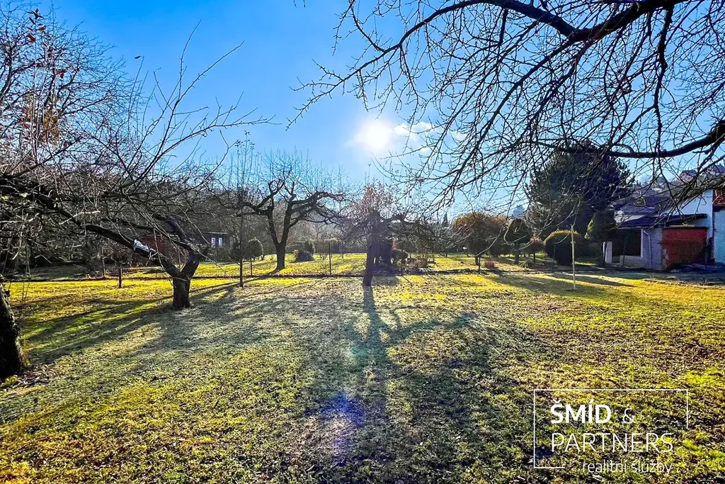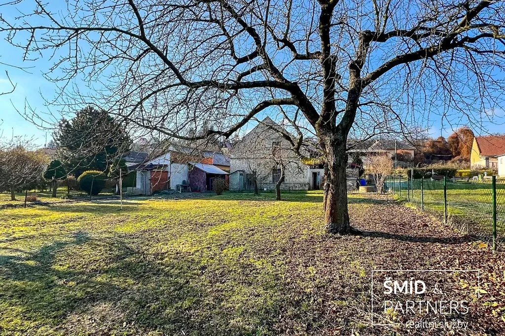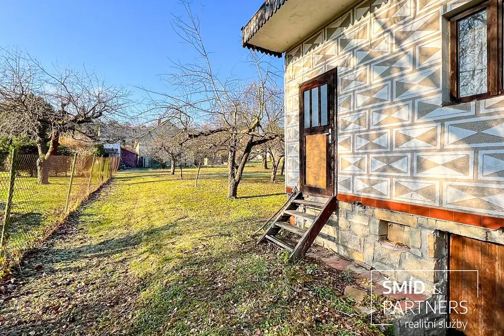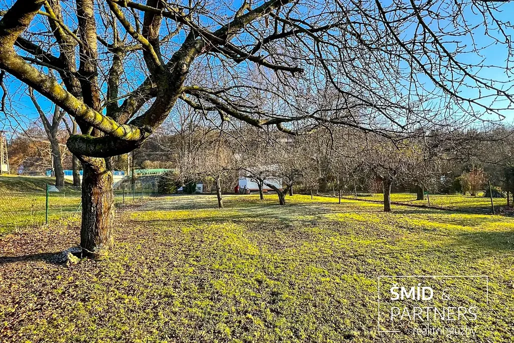 Krásný rovinatý pozemek za domem je osázen především ovocnými stromy, v zadní části pozemku je postaven zahradní domek, který je částečně podsklepen a je řádně zkolaudován. Jeho technický stav již vyžaduje opravu. Na pozemku je umístěno i ohniště, udírna, studna a menší kůlna.