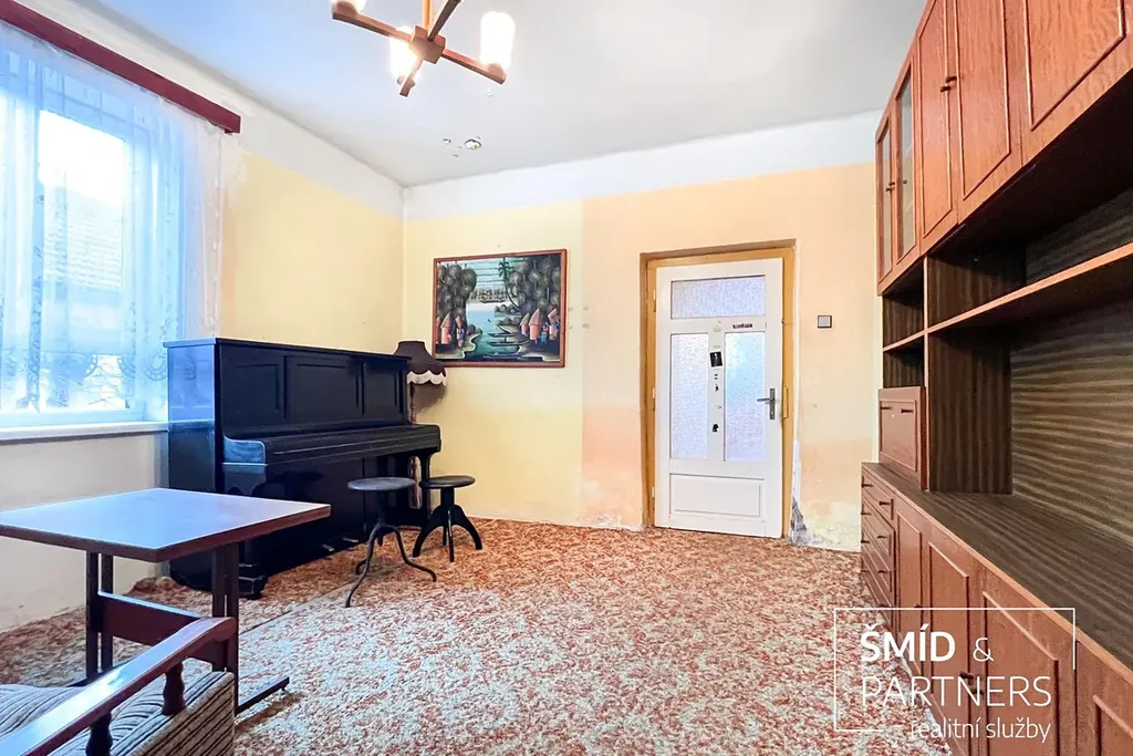 Dům byl vystavěn v roce 1927 a od té doby je stále užíván a průběžně udržován. Dům se zastavěnou plochou 182 m2 má 1. NP a nabídne dispozici 4+kk, koupelnu s WC, samostatné WC, sklad. Z centrálně umístěné chodby vede schodiště na plně pochůznou půdu, kde se nabízí možnost k vybudování dalších obytných prostor. Na obytnou část domu navazuje technické zázemí v podobě kotelny a uhelny, kde je umístěn kotel na pevná paliva sloužící jako zdroj vytápění, dále je zde bývalá hospodářská část s malým chlévem a přístavek užívaný jako garáž.