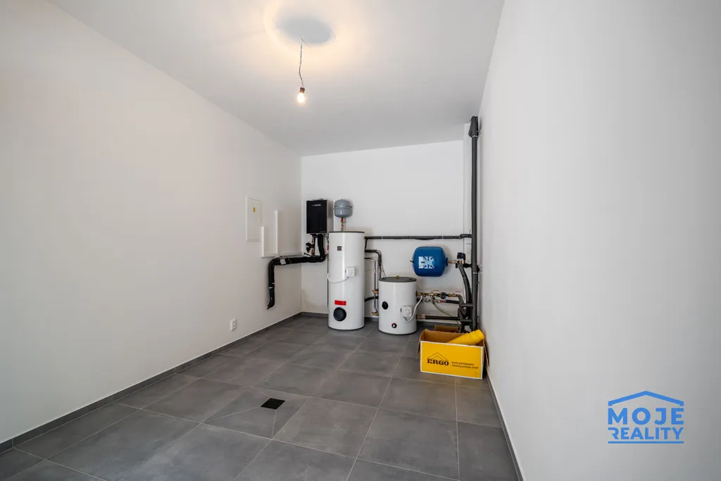 Interiérové prvky, jako jsou koupelny a kuchyňský kout, je možné dokončit na přání budoucího majitele (nejsou zohledněny v ceně). Díky tepelnému čerpadlu, vrtu a zateplení, má dům velmi nízké provozní náklady.