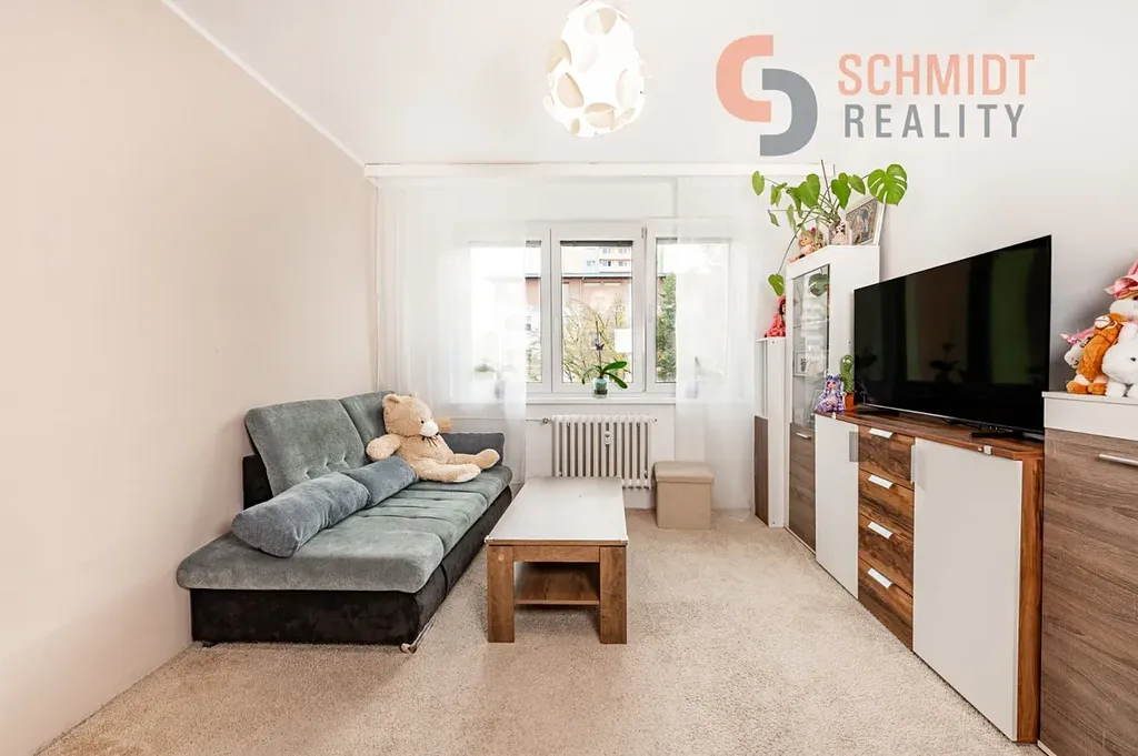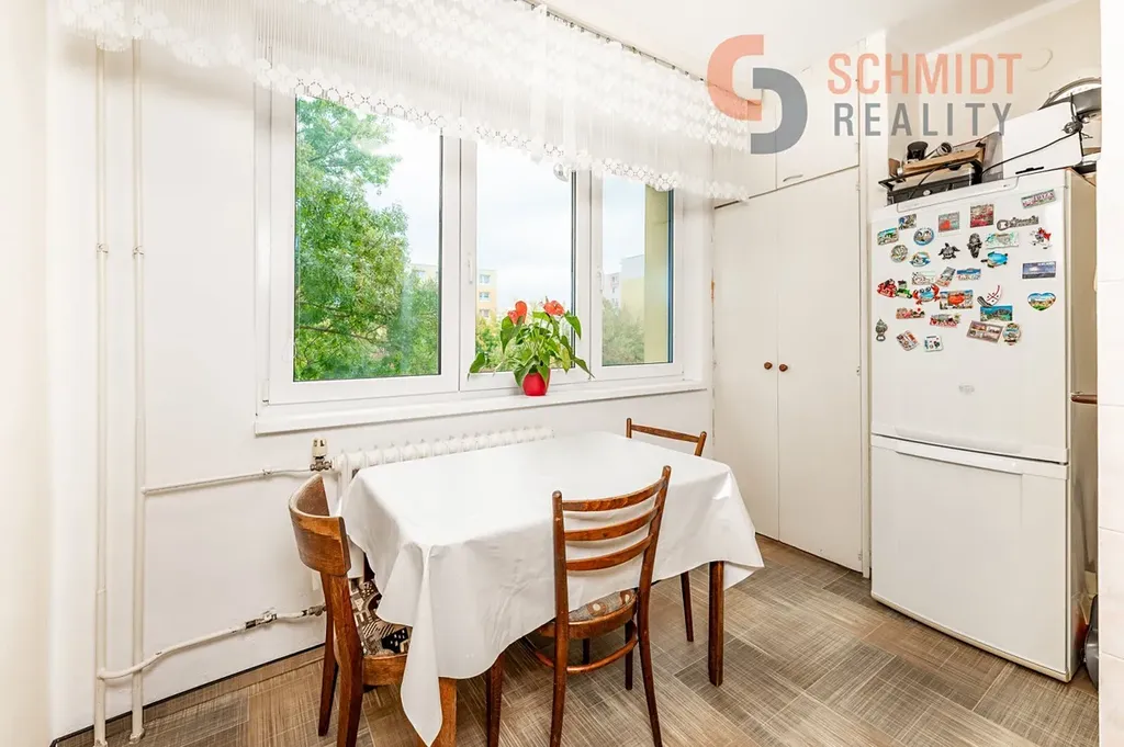 Byt nabízí praktické dispoziční řešení. Ze vstupní chodby je přístup do všech místností. Obývací pokoj i ložnice jsou orientované na západ, přičemž v ložnici je k dispozici balkon. Kuchyně je samostatná, s jídelním koutem. Součástí bytu je koupelna a samostatné WC.