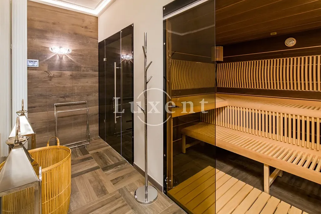 Nabízíme luxusně vybavený designový apartmán „Diamond“ v nově zrekonstruovaném historickém domě Rubin Palace, v srdci Karlových Varů, ve Vřídelní ulici na lázeňské kolonádě. Jedná se o prémiový byt, se saunou, terasou ve stylovém dvoře a balkony orientovanými na kolonádu, situovaný v 1. patře tohoto atraktivního rezidenčního domu s výtahem. Dispozice 3+kk je rozložena na podlahové ploše 238 m2 s balkony o velikosti celkem 7,3 m2 a terasou 30 m2.