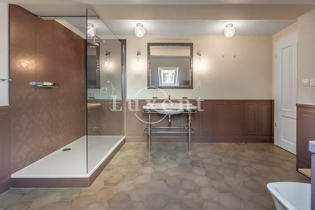Nabízíme luxusně vybavený designový apartmán „Aquamarine“ v nově zrekonstruovaném historickém domě Rubin Palace, v srdci Karlových Varů, ve Vřídelní ulici na lázeňské kolonádě. Jedná se o mezonetový byt ve 4. a 5. patře tohoto atraktivního rezidenčního domu s výtahem. Dispozice 3+kk je rozložena na podlahové ploše 105 m2.