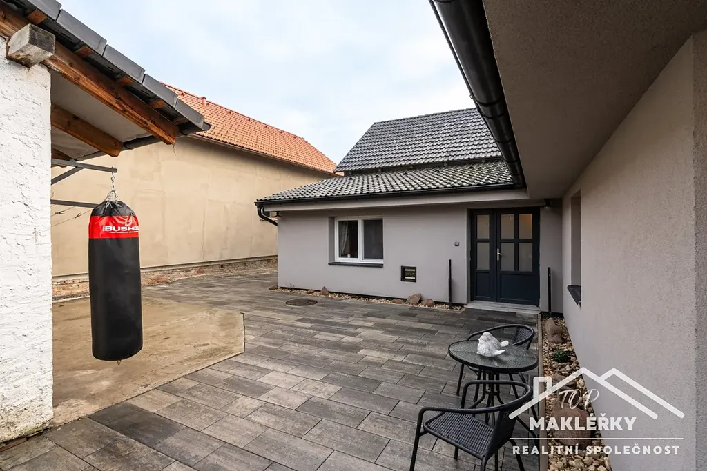Co tedy po koupi můžete očekávat: plášť domu je kompletně odizolován 10cm vrstvou polystyrenu, nová fasáda, rozvody vody, kanalizace i rozvody topení. Elektřina vedená v mědi. Plastová okna s izolačním dvojsklem. Vytápění domu zajištují krbová kamna s výměníkem, kdo raději volí pohodlnější cestu, zatopí elektrickým kotlem. Na podlahách v celém domě dlažba. Na střeše betonová taška KM Beta. Voda přivedena z obecního vodovodu, odpadní voda svedena do obecní tlakové kanalizace. Na dvoře kvalitní, velkoformátová dlažba Best. Ve sklepě úpravna vody od společnosti Ivar cs. Půda je vyklizena a v části přístavby zateplena vatou a extrudovaným polystyrenem. Vedlejší stavby - kůlna a dřevník na 40 kubíků dřeva.