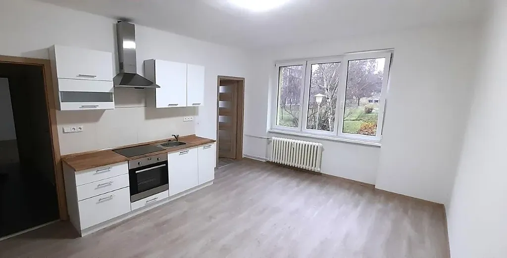 V kuchyni je kuchyňská linka s elektrickými kamny, varnou deskou a digestoří. V koupelně je sprchová kout a umyvadlo, WC je odděleno. Místnosti jsou světlé a prostorné. K bytu náleží sklep.