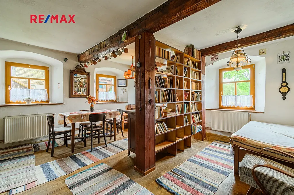 V přízemí tohoto dvoupatrového rodinného domu na Vás dýchne atmosféra původního selského stavení, umocněna nádhernými kachlovými kamny a pecí na chleba. K dispozici jsou zde dva pokoje, kuchyně, koupelna a toalety. Součástí je také bývalá útulná hospůdka, ideální místo pro rodinné oslavy nebo příjemné posezení s přáteli.