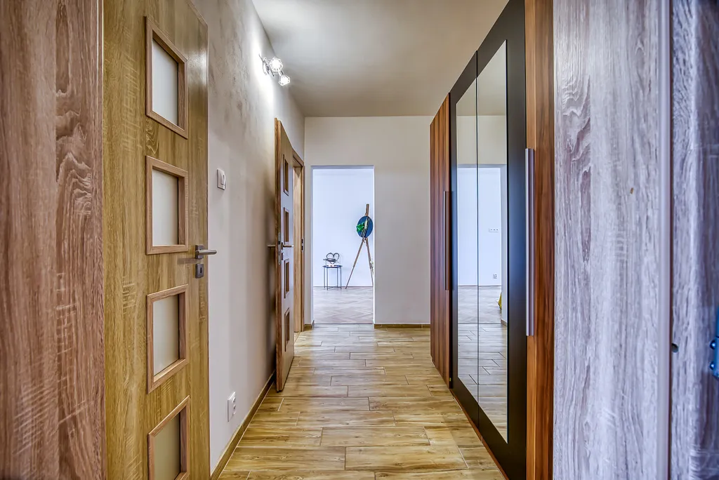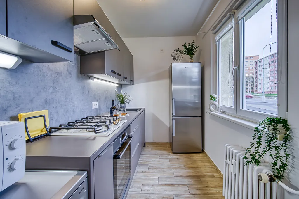 Byt se nachází v 1. nadzemním podlaží panelového domu a disponuje novou kuchyňskou linkou s plynovou varnou deskou, elektrickou pečící troubou, lednicí s mrazákem, myčkou, mikrovlnnou troubou a digestoří. V koupelně se nachází vana, pračka a sušička. V předsíni je velká šatní skříň s úložným prostorem. Toaleta je samostatná. Součástí bytové jednotky je sklepní kóje. Měsíční nájemné činí 10 500,- Kč, záloha na služby 1 osoba 1 900,- Kč, 500,- Kč další osoba. Kauce je ve výši 15 000,- Kč a provize RK ve výši 13 000,- Kč. Elektřina a plyn se přepisuje na nájemce. Bytová jednotka na dlouhodobý pronájem bude k dispozici od 01.01.2026, nabízí se bez nábytku. V okolí domu se nachází veškerá občanská vybavenost. V případě zájmu o prohlídku neváhejte kontaktovat makléře.