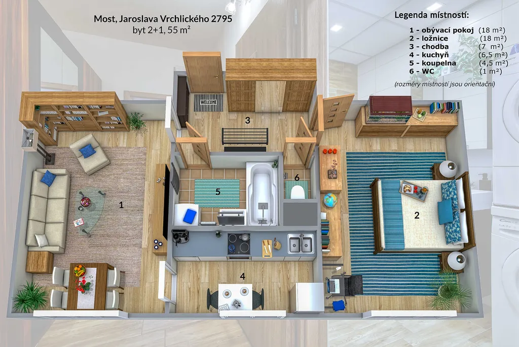 Nabízíme k pronájmu krásný zrekonstruovaný byt 2+1 o rozloze 54 m² na adrese Jaroslava Vrchlického 2795/17, Most.