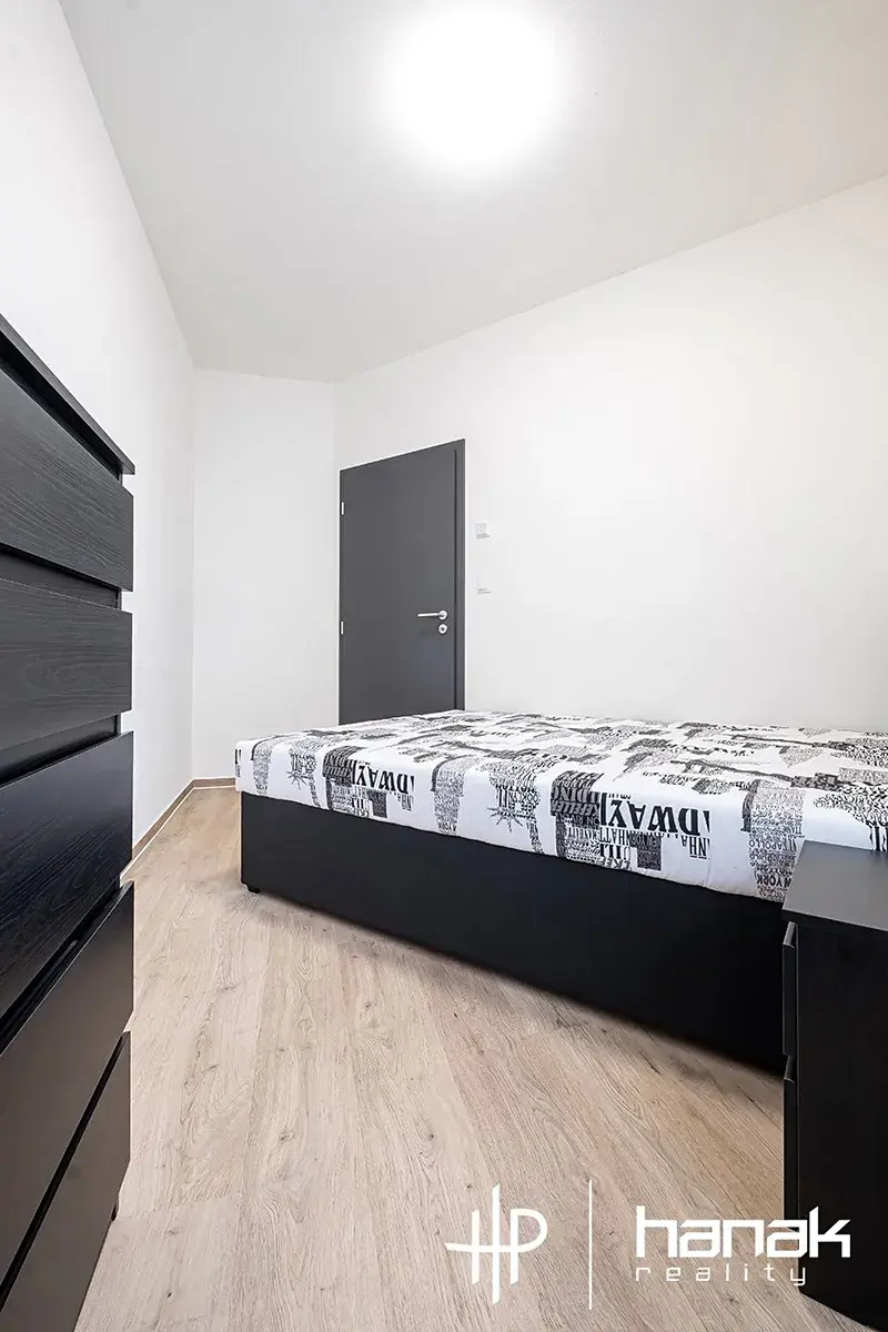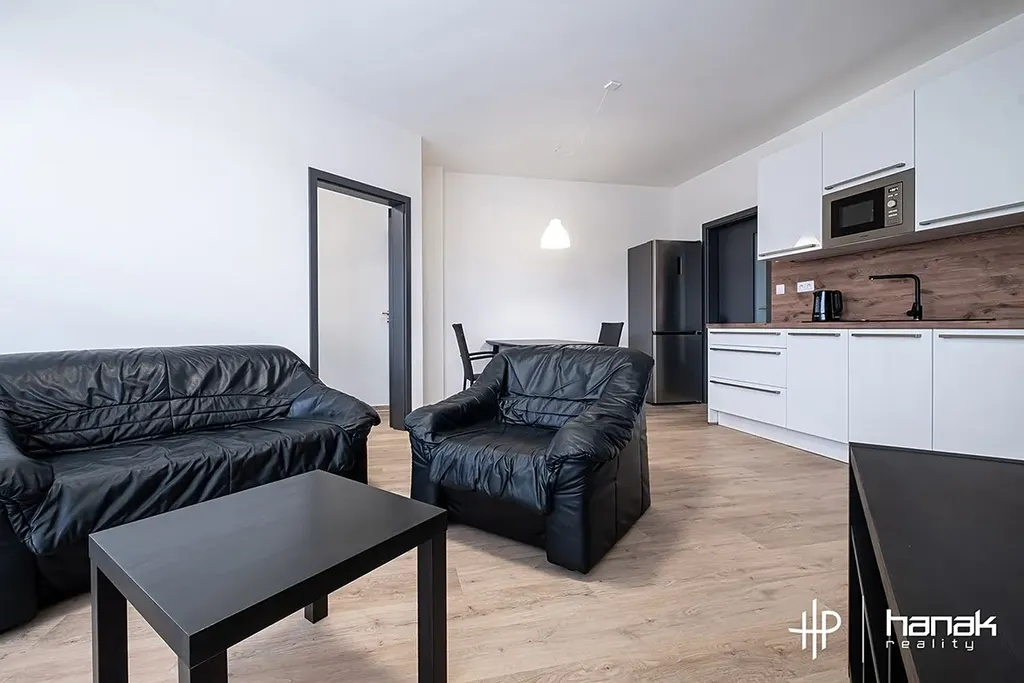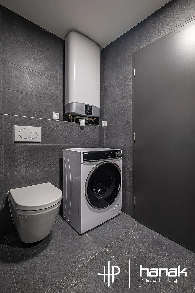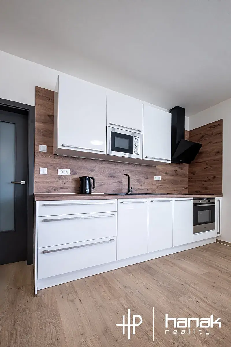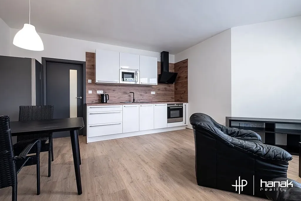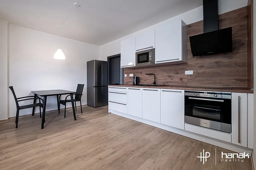 Ohřev vody je řešen elektrickým boilerem. Vytápění je elektrické podlahové. Energetická třída budovy je B – Velmi úsporná. V jednotce najdeme vstupní chodbu s vestavěnou skříní, koupelnu se sprchou, wc, umyvadlem a pračkou. Dále ložnici, obývací pokoj s kuchyňskou linkou včetně spotřebičů. Byt je vybaven základním nábytkem. V obývacím pokoji stůl se židlemi, sedačka, křeslo, stolek a skříňka pro TV. V ložnici manželská postel a komoda. Kuchyňská linka má troubu, indukční desku, myčku, lednici, digestoř s odtahem a je vybavena nádobím pro okamžité použití kuchyně. Součástí vybavení je i vysavač.