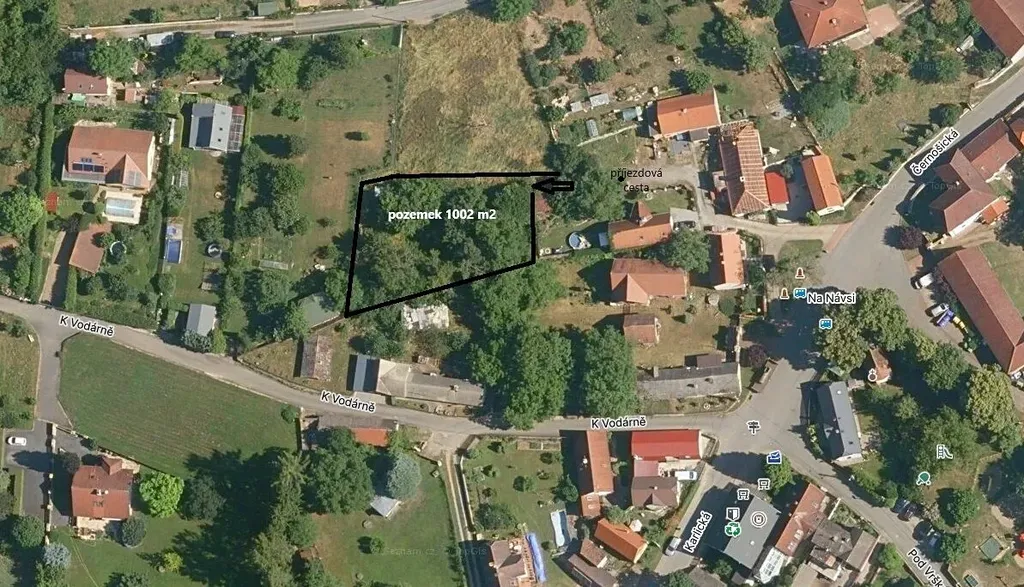 Stavební pozemek 1002 m2 na RD ve Vonoklasech (u Černošic), Praha západ.