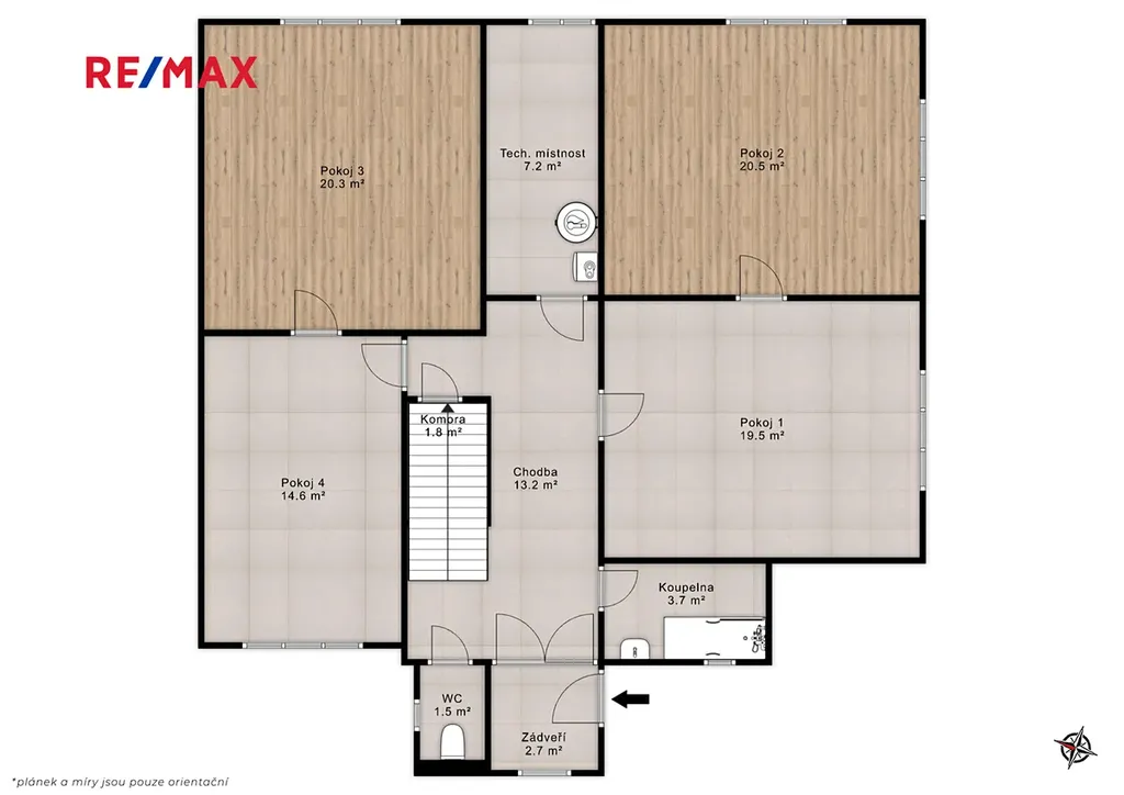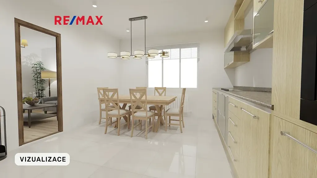 Aktuální dispozice 6+1 (4 místnosti v přízemí a 3 v patře) umožňuje přizpůsobit dům potřebám i početnější rodiny.