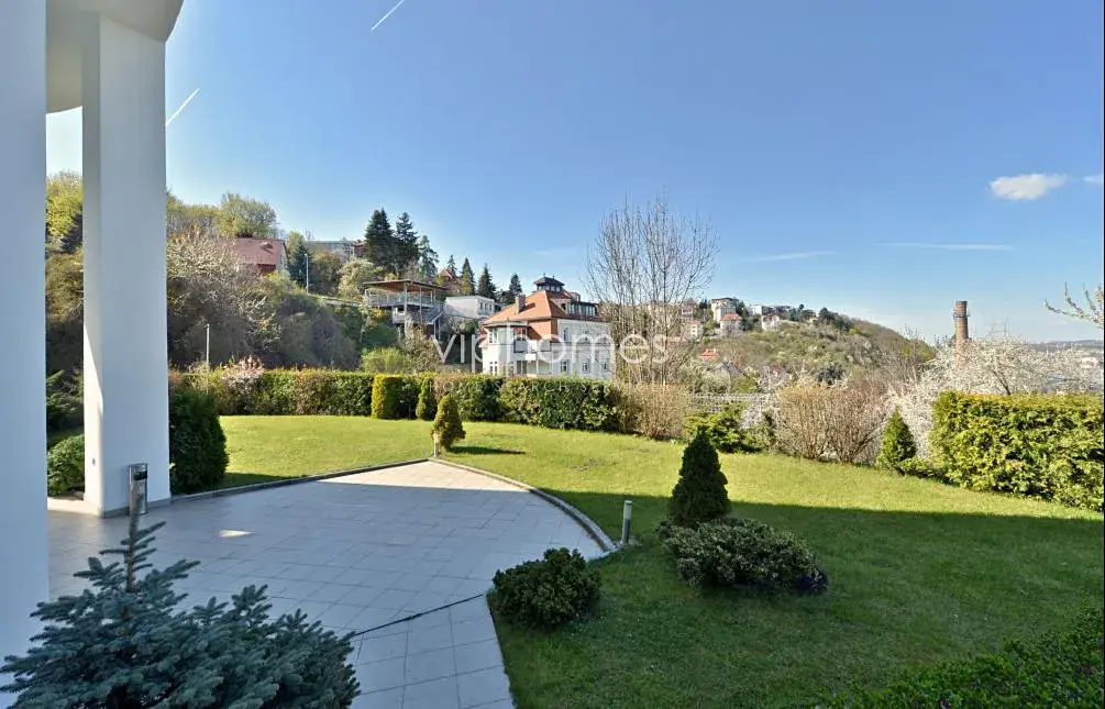 Reprezentativní vila s vnitřním bazénem v sousedství přírodního parku Dívčí Hrady. Jedinečná pozice nemovitosti nabízí klid a soukromí s nádherným výhledem. 10 minut jízdy autem k nákupnímu centru a stanici metra Anděl, výborná dostupnost do francouzského lycea, německé školy.