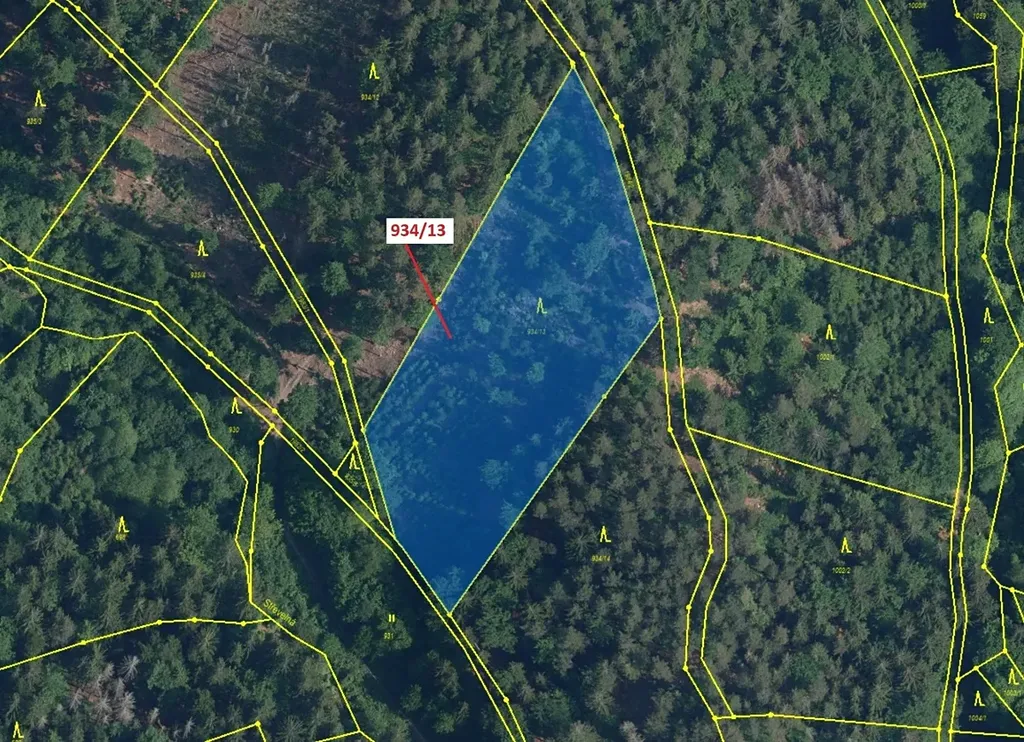 Lesní pozemek o výměře 6 213 m2, parcelní číslo 934/13, podíl 1/1, katastrální území Jílové u Držkova, obec Jílové u Držkova, obec s rozšířenou působností Železný Brod, okres Jablonec nad Nisou, Liberecký kraj.