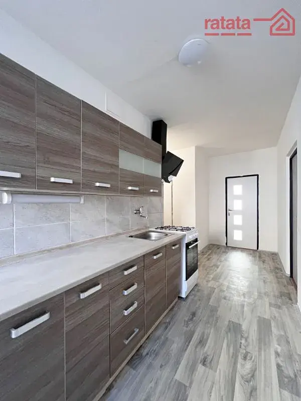 Je to čistý, slunný byt. Je zde kuchyňská linka, plynový sporák, vana, umyvadlo a WC. Na podlahách je položeno lino. Byt je volný k nastěhování od 1.1.2026.