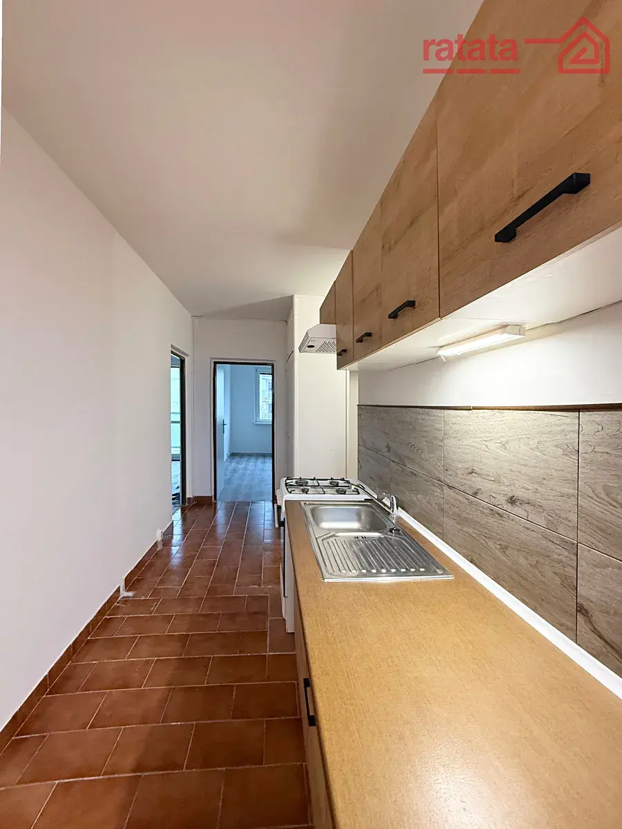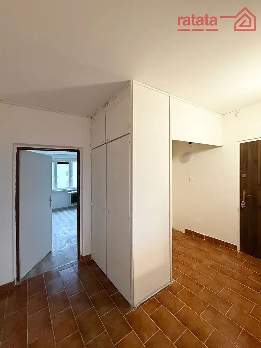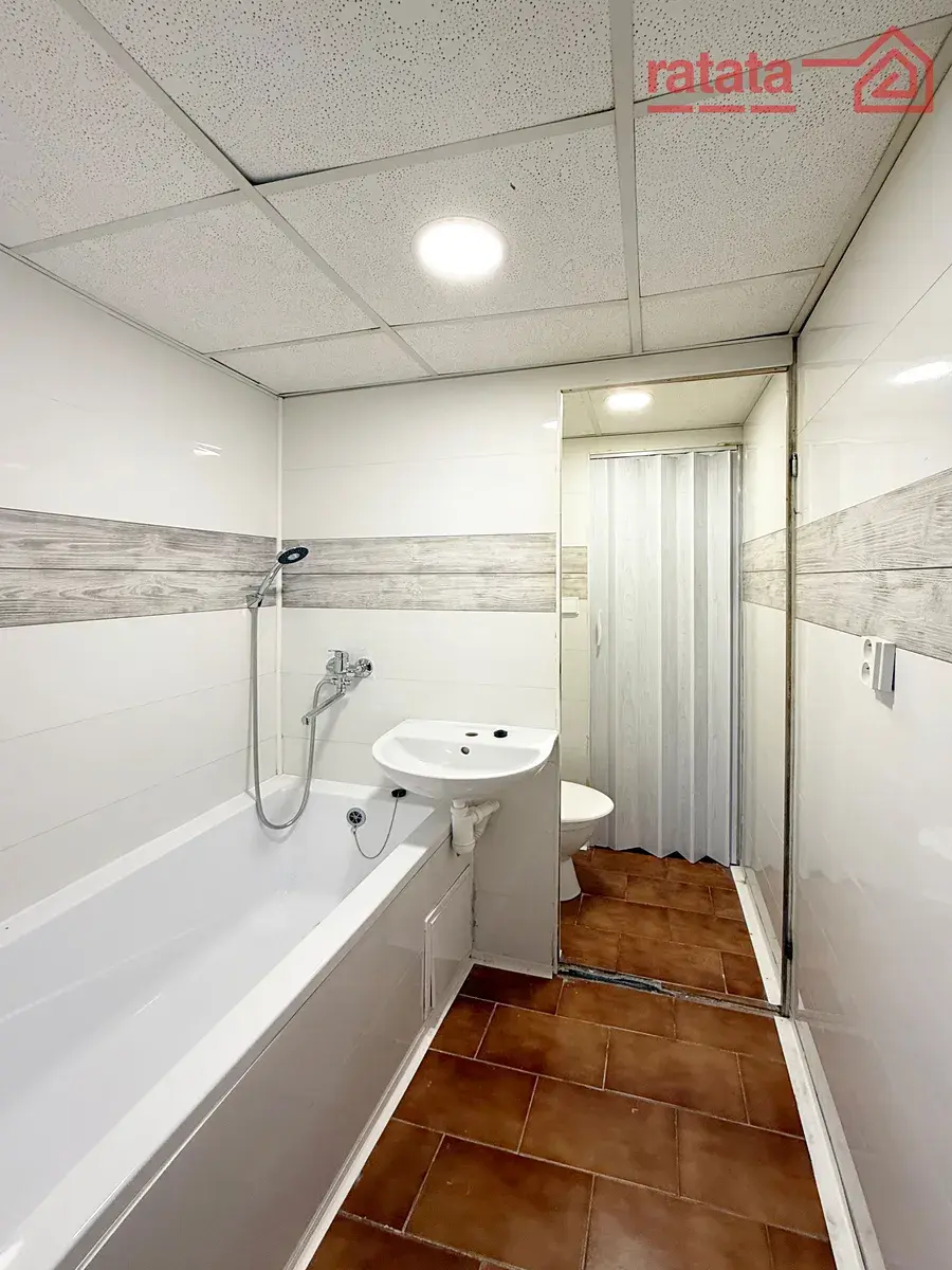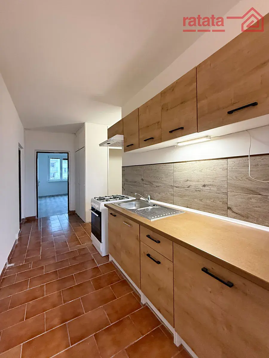 Je to čistý a slunný byt. Je zde kuchyňská linka, plynový sporák, sprchový kout, umyvadlo a WC. Na podlahách je položeno lino. Byt je volný k nastěhování IHNED.