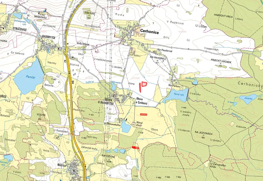 V katastrálních územích Cerhonice a Malčice u Mirotic, okres Písek, nabízím k prodeji soubor zemědělských a lesních pozemků ve výlučném vlastnictví. Pozemky jsou zapsány na listech vlastnictví č. 220 (Cerhonice) a č. 350 (Malčice u Mirotic).
