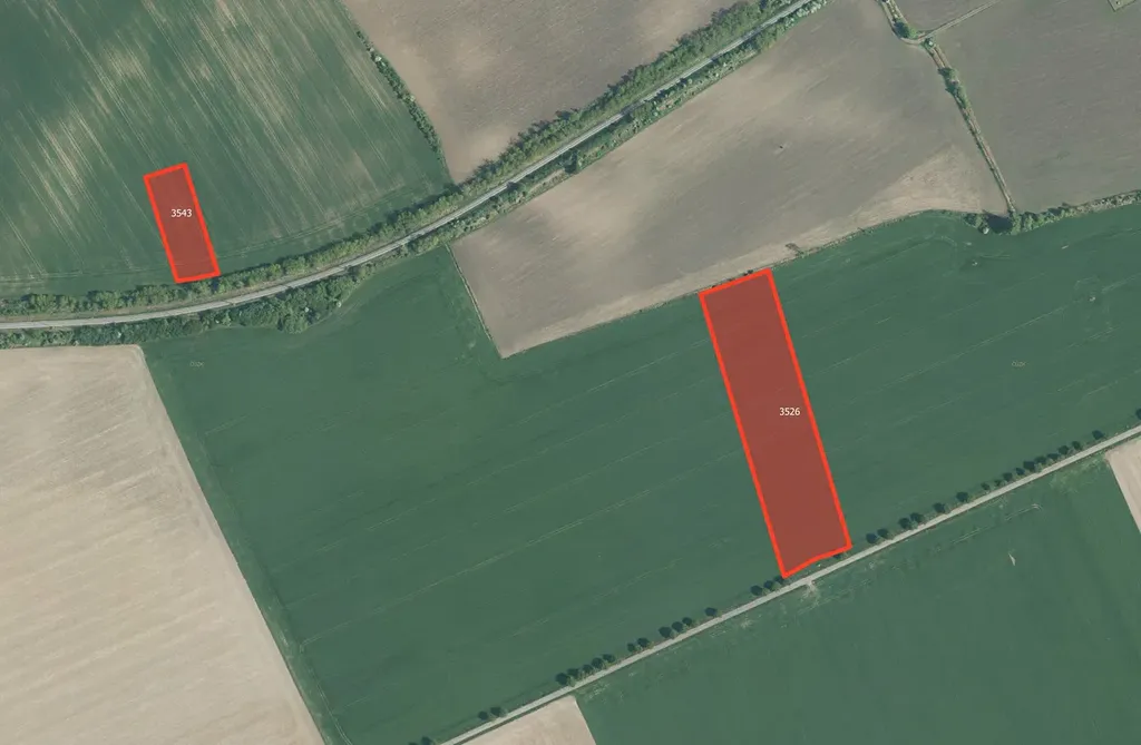 Jedná se o parcely: 3233, 3448, 3526 a 3543